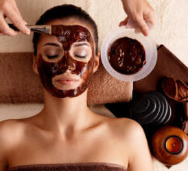 Chamomile Tea infused pads are gently massaged into your facial muscles. The pressure of the face and neck massage will loosen the muscles leaving your face relaxed and therefore younger. Because massage stimulates circulation to the face your complexion will be left toned and glowing. A 50 Minute Body and Scalp Massage is included. Rich in antioxidants, Dark Chocolate helps reverse the signs of ageing. It moisturizes your skin, protects the skin from sun damage and tightens the skin reducing wrinkles by maintaining collagen production. This is not an Esthetician Facial. 50 Min. also available